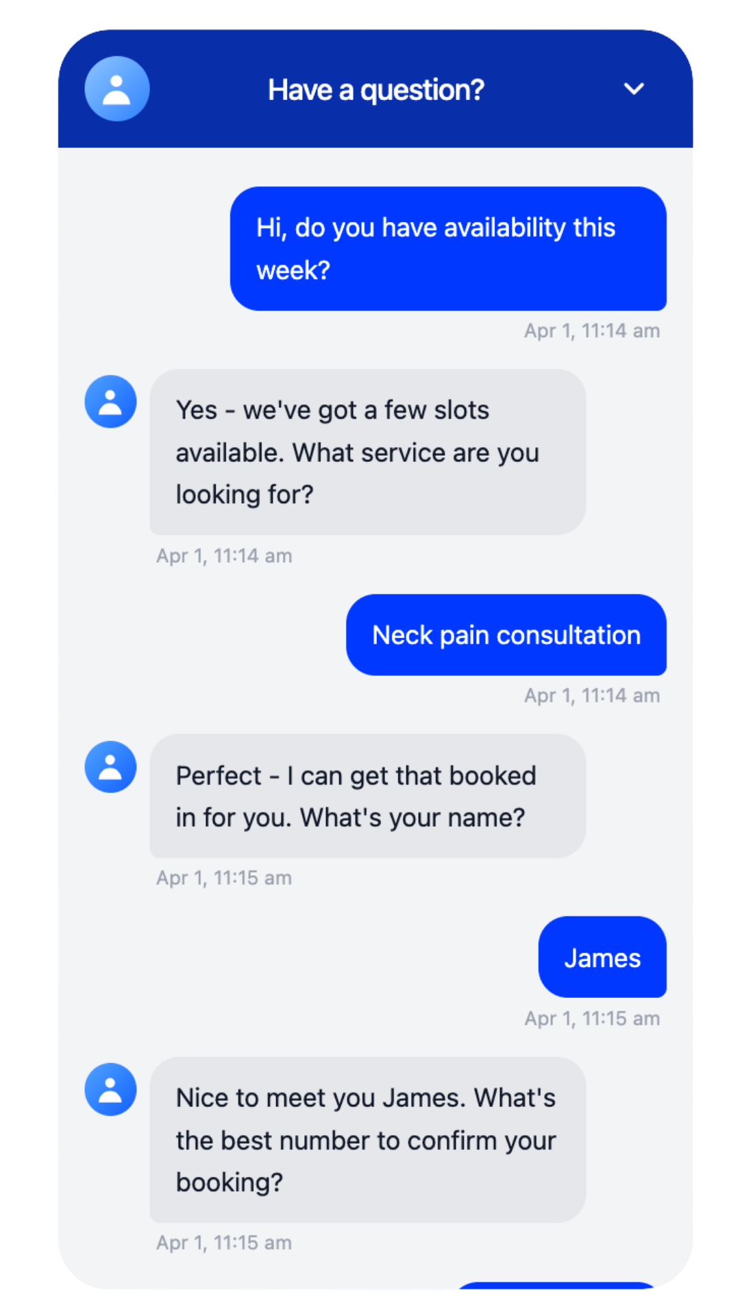 It handles common customer questions, service enquiries, pricing queries, and booking requests. It’s trained around your business to respond accurately and guide users toward taking action.